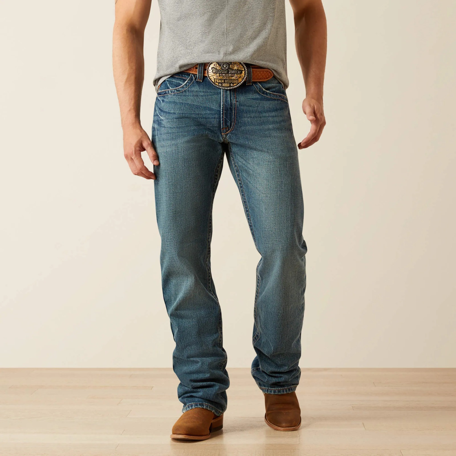 A Calça Jeans Ariat M4 Low Rise Scoundrel Boot Cut 10008403 combina ajuste relaxed no cós, quadril e coxa com cintura baixa e perna bootcut que cobre perfeitamente a bota. A lavagem clara Scoundrel com whiskers e hand sanding garante visual cowboy clássico com pegada moderna — ideal como Jeans Country Masculino para trabalho, rodeio ou cidade.