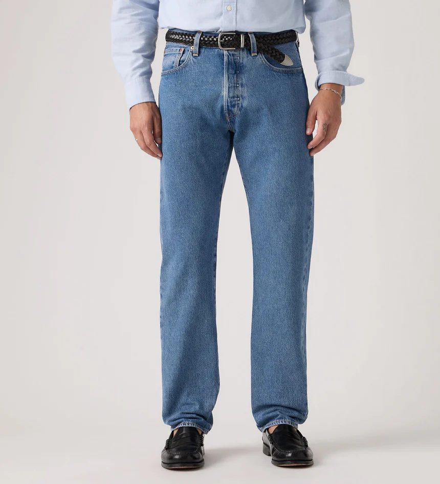 🔘 Fechamento tradicional com botão (button-fly) — um dos traços mais autênticos do 501.