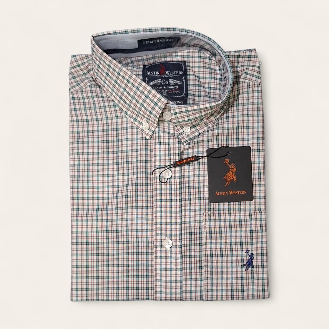 CAMISA AUSTIN M/C XADREZ BRANCA