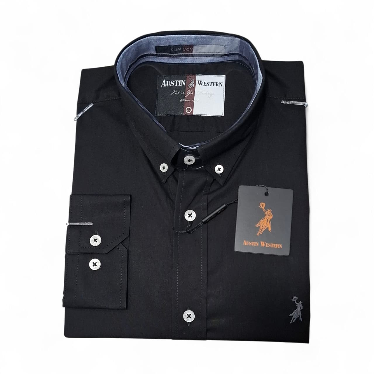 CAMISA AUSTIN M/L LISA PRETA SLIM COMFORT