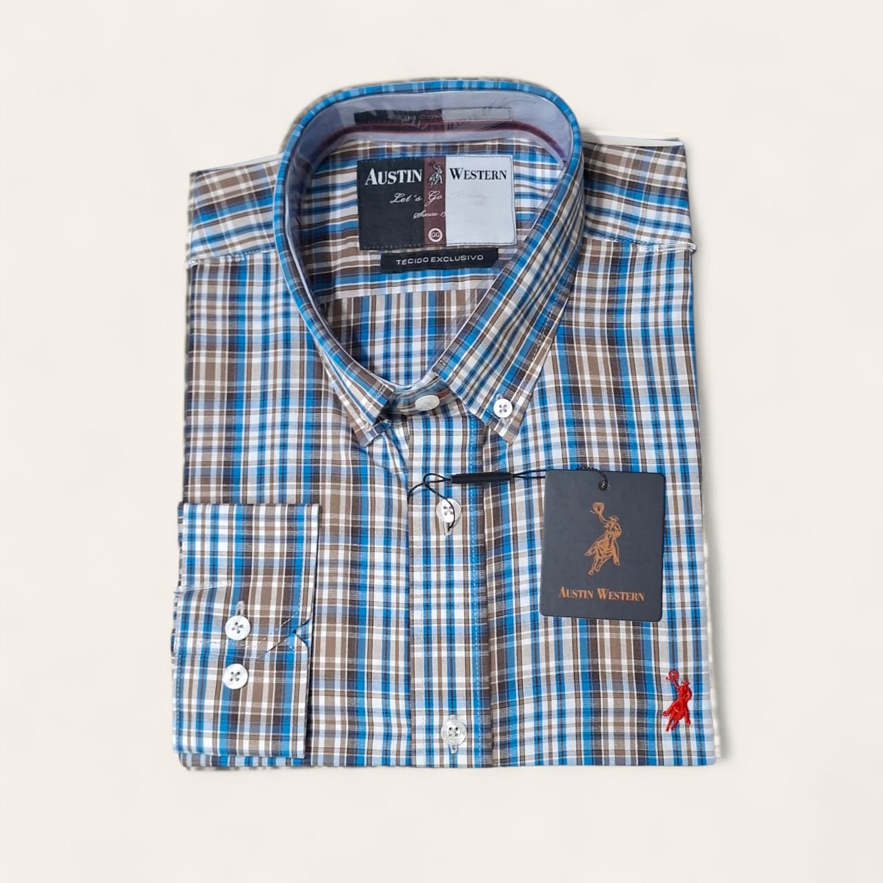 CAMISA AUSTIN M/L XADREZ AZUL SLIM COMFORT