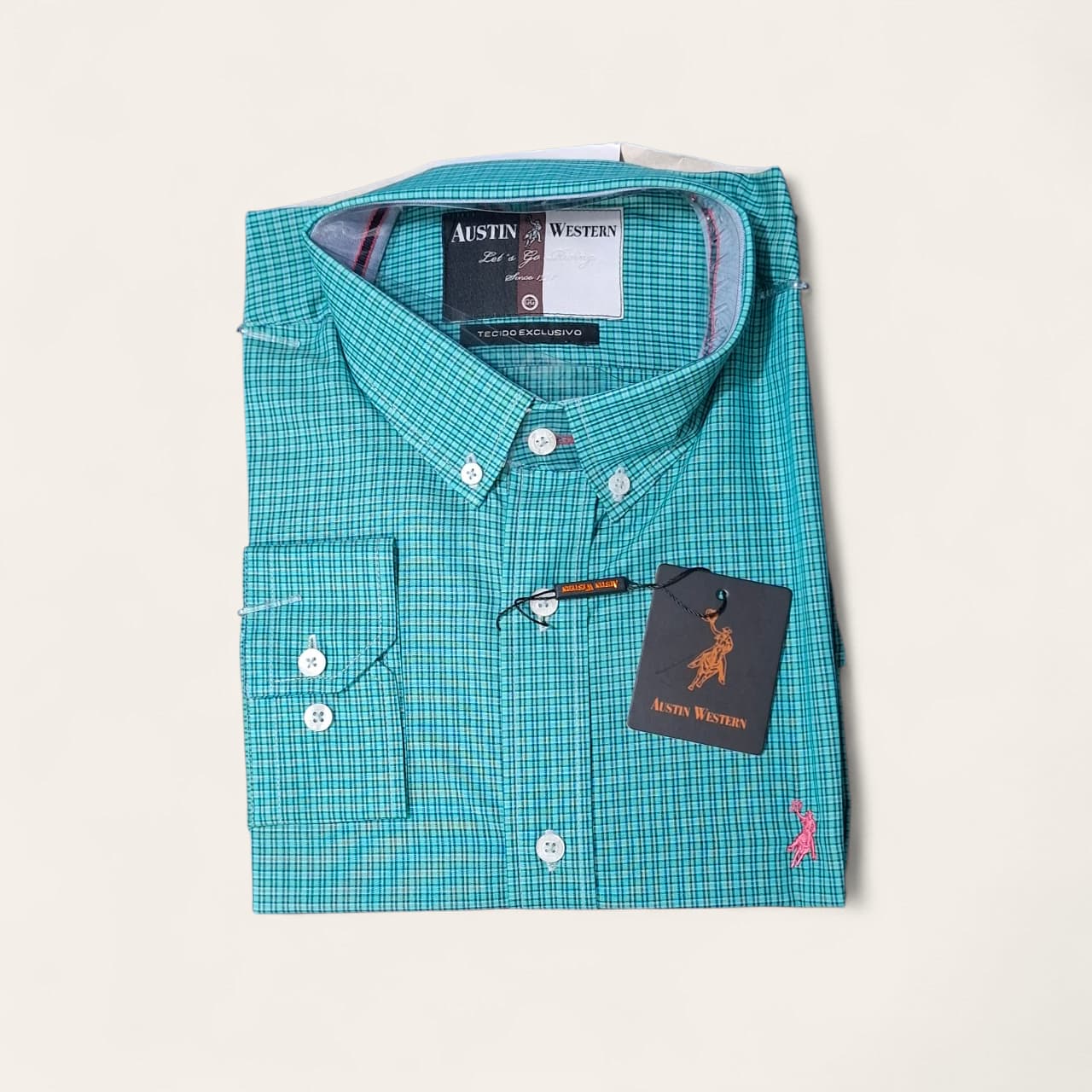 CAMISA AUSTIN M/L XADREZ VERDE AGUA SLIM COMFORT