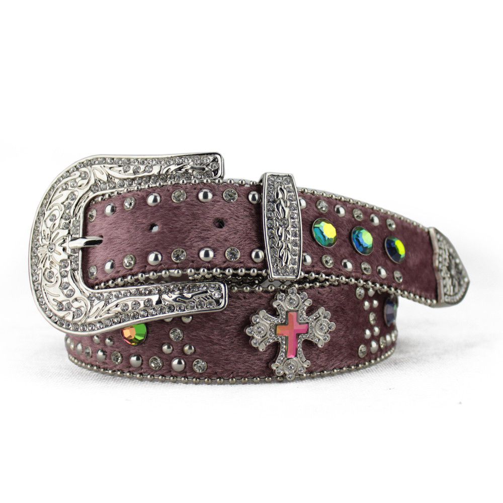 Cinto Made in Lida Feminino Pelo de Boi Réplica Pedraria Furta Cor Lilás T116