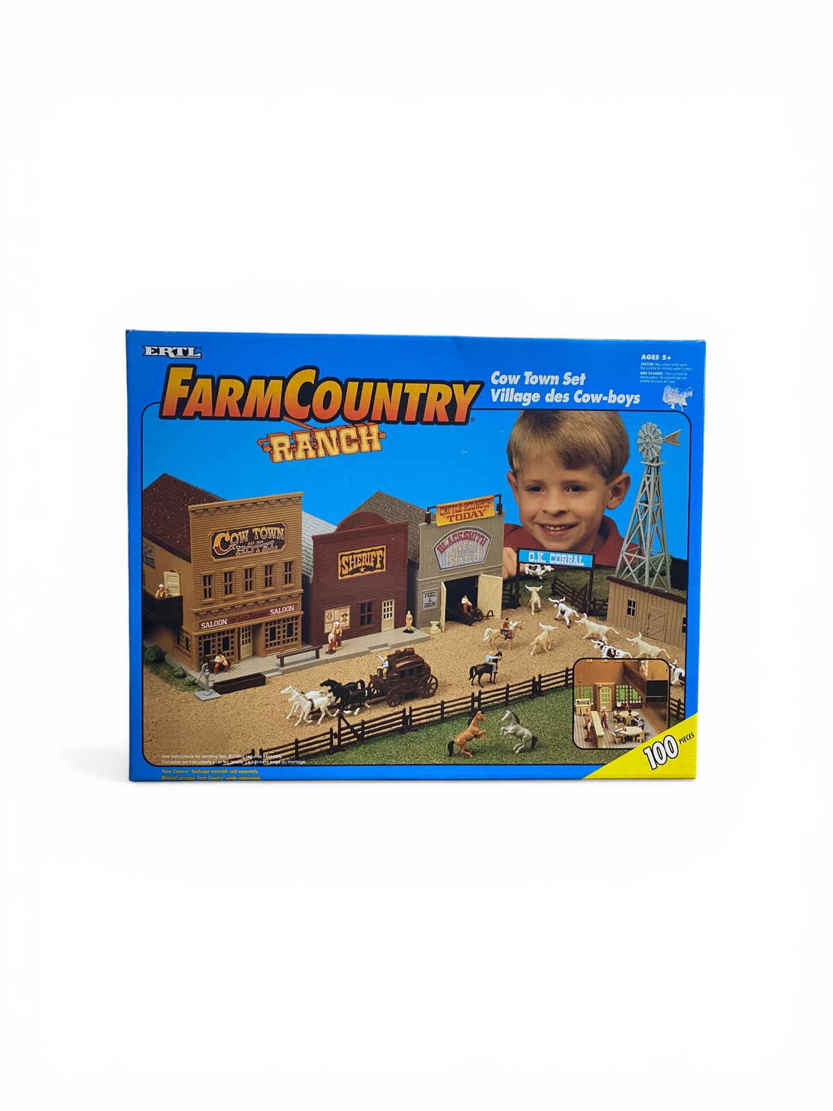 O Farm Country Ranch Cow Town (100 peças) é um playset clássico da marca Ertl, inspirado no universo rural e no estilo western americano. Ideal para estimular a criatividade, o conjunto permite montar uma verdadeira cidade do interior com fazenda, animais e diversos acessórios.