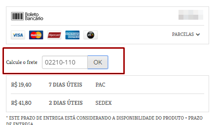 R: Para saber quanto pagará de envio, digite o CEP do endereço que deseja receber o produto. O campo para preenchimento dos dados está abaixo do "Comprar", no canto direito da tela.